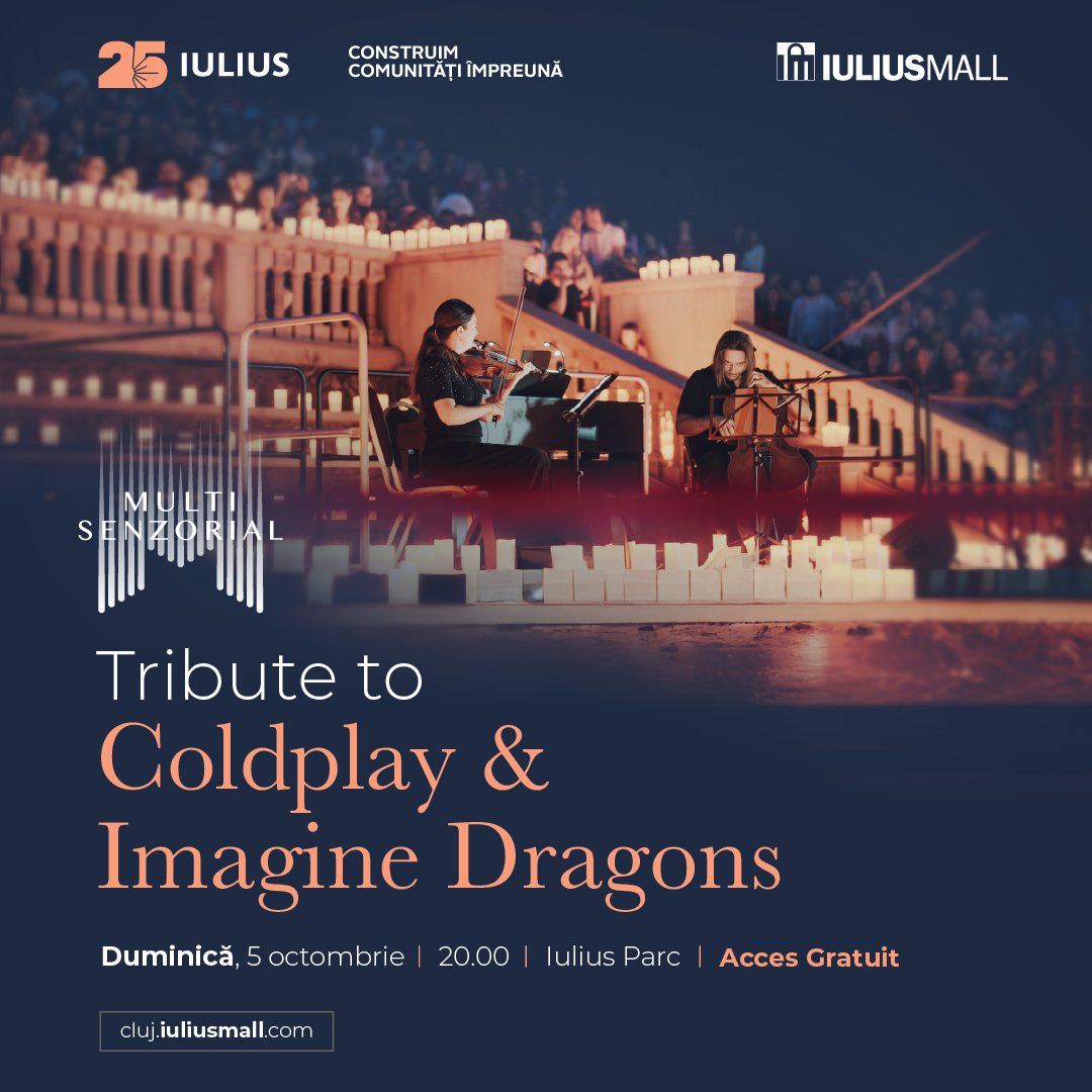 Duminică, 5 octombrie 2025, de la ora 20.00, compania IULIUS invită publicul la o audiție multisenzorială, sub cerul liber, într-un decor fascinant cu mii de lumânări, cu o scenă impresionantă și într-o atmosferă care pune în evidență o experiență artistică unică. Spectacolul Multisenzorial va aduce în Iulius Parc emoție, lumină și, mai ales, cu muzică interpretată live, într-un tribut oferit îndrăgitelor formații Coldplay și Imagine Dragons.