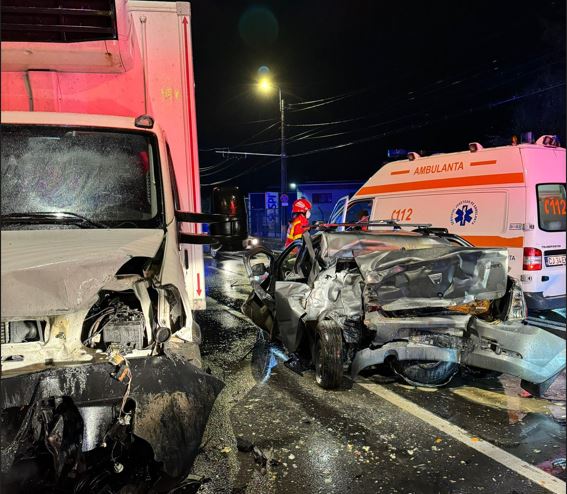 Solicitarea a venit în jurul orei 05.40, iar în accident au fost implicate un autoturism și o autoutilitară.