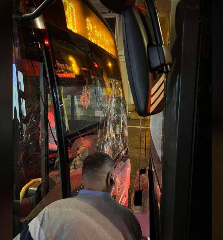 Astfel, unul dintre șoferi a încercat să-și calmeze colegul, în contextul în care impactul s-a produs brusc, iar cele două mijloace de transport public au fost serios avariate.