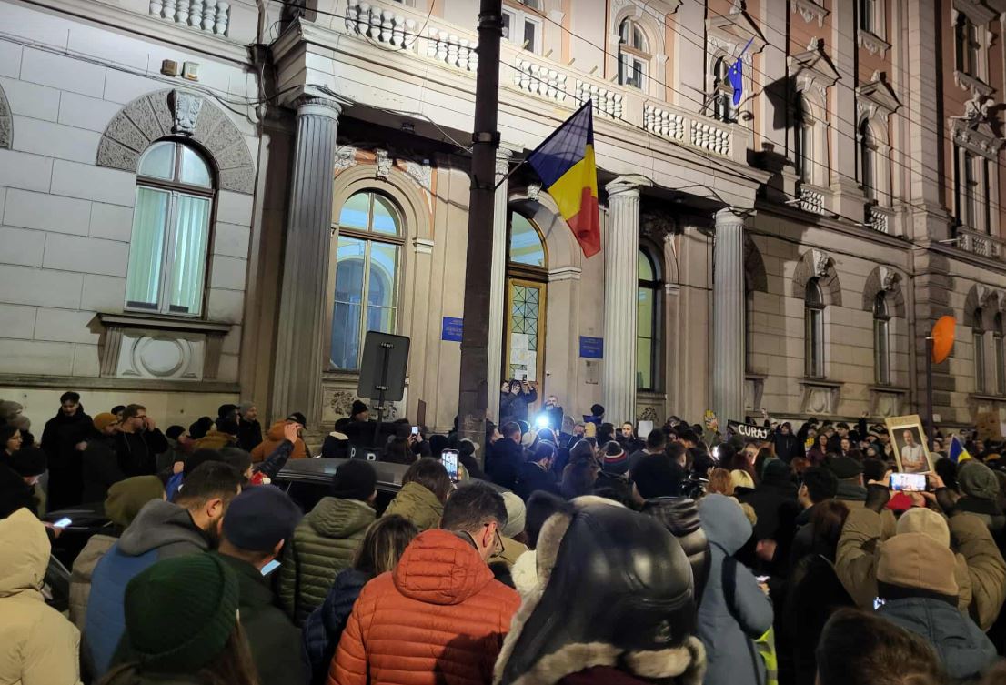Joi seara, peste 1.000 de oameni au protestat în fața Tribunalului Cluj împotriva „justiției capturate”.