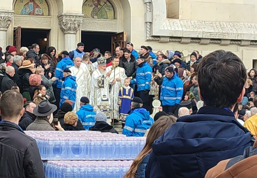 Mii de clujeni s-au adunat în fața Catedralei Mitropolitane la slujba de Bobotează. 20.000 de sticle cu apă sfințită au fost pregătite pentru a fi împărțite credincioșilor.