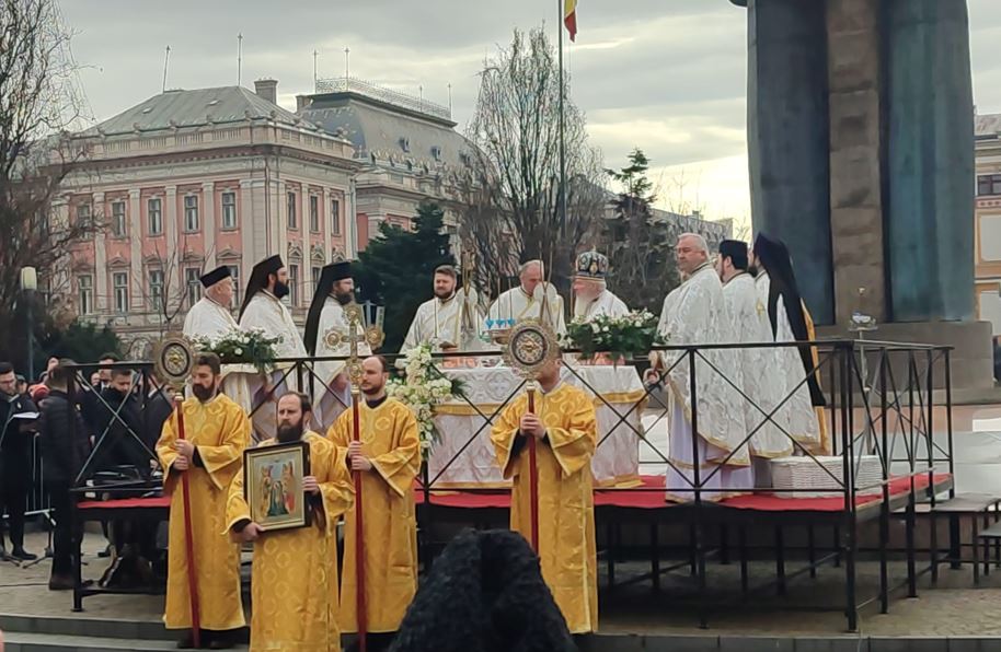 Piața Avram Iancu a devenit neîncăpătoare: credincioșii s-au adunat în fața Catedralei Mitropolitane din Cluj, unde au participat la slujbă și au ascultat predica rostită de ÎPS Andrei, Arhiepiscopul Vadului, Feleacului și Clujului și Mitropolitul Clujului, Maramureșului și Sălajului.
