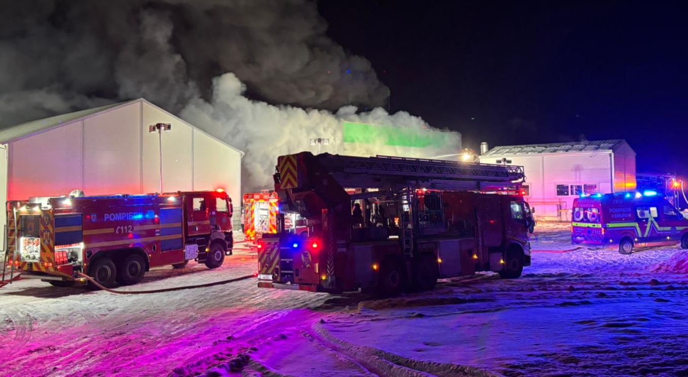 Incendiul a fost localizat, iar pompierii au reușit, prin eforturi susținute, să protejeze alte două hale situate în imediata vecinătate.