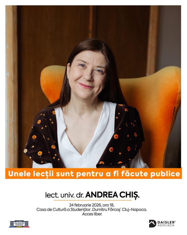 Unele cariere nu se termină. Se transformă în povești care merită spuse mai departe. Fosta judecătoare și membră CSM, Andrea Chiș, vine în fața publicului într-o altfel de întâlnire, marți, 24 februarie, pe scena Casei de Cultură a Studenților din Cluj-Napoca.