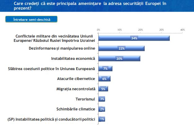 *22% indică dezinformarea și manipularea online drept principala amenințare pentru securitatea europeană.