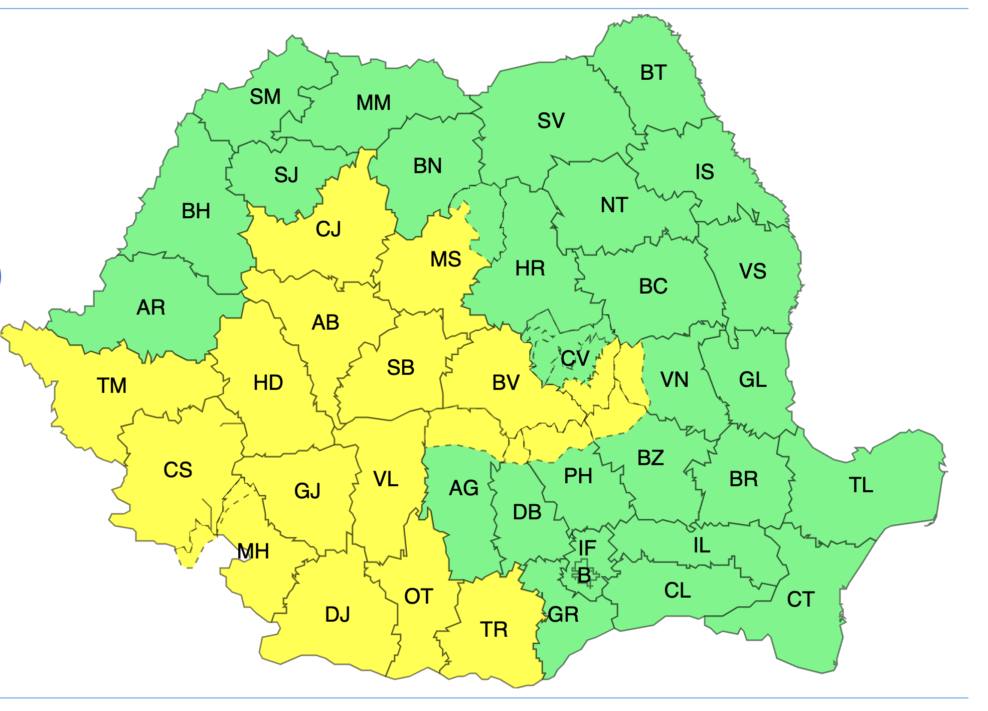 ANM a emis un cod galben de zăpadă și viscol, care este valabil la Cluj și în alte câteva județe din România.