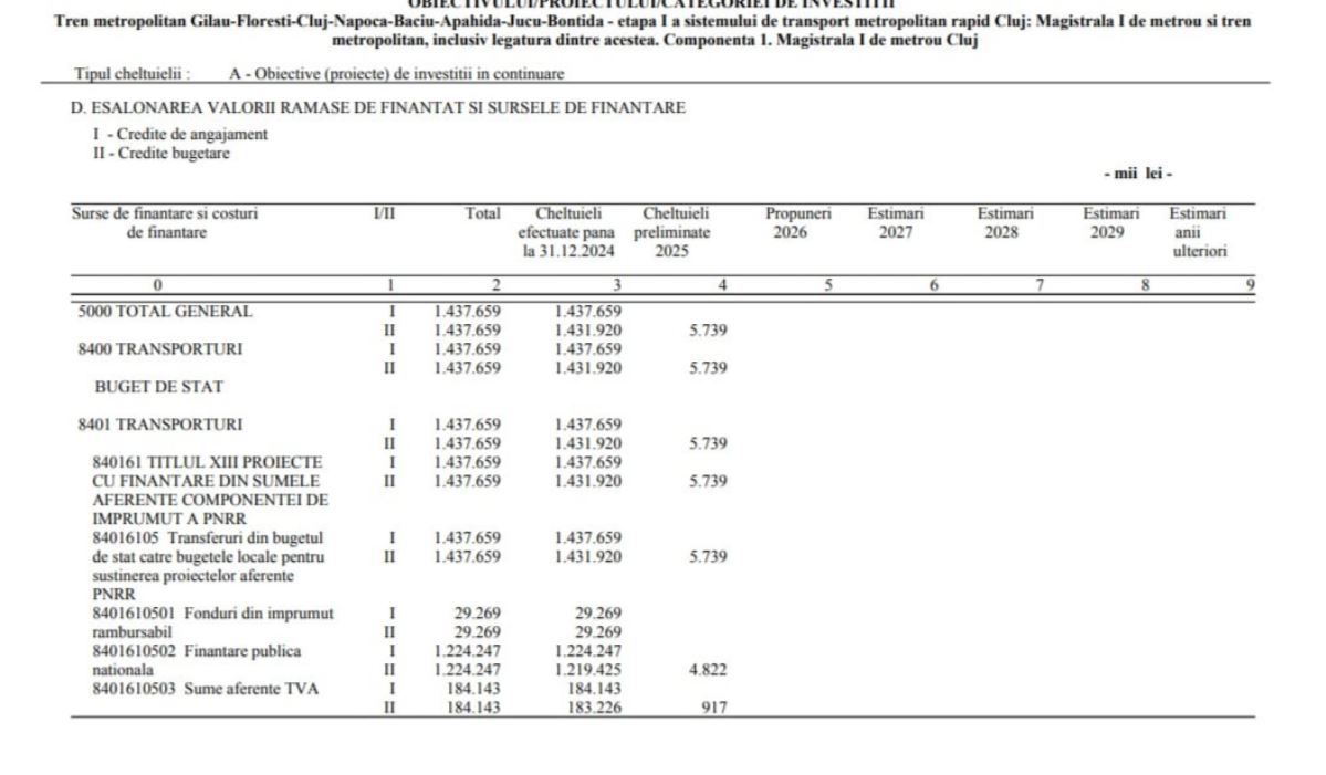 Proiectele majore de infrastructură ale Clujului, prinse în bugetul pe 2026: Cum sunt alocate fondurile pentru metrou, centura metropolitană și modernizarea căii ferate Cluj – Oradea