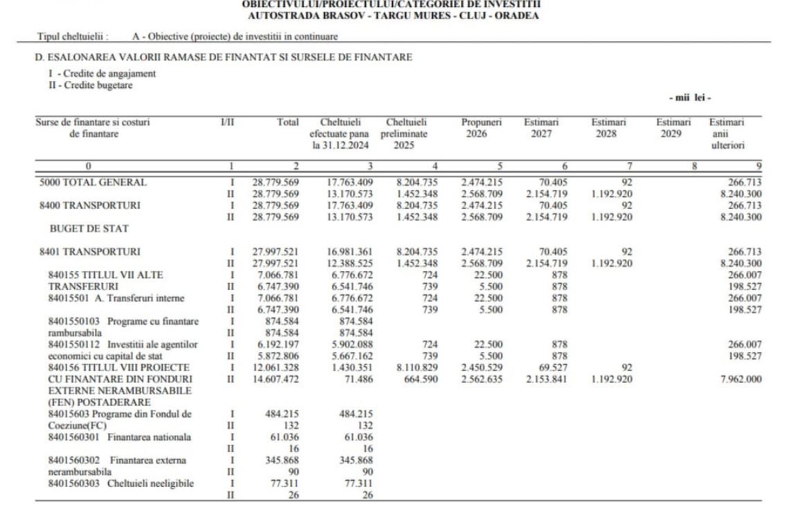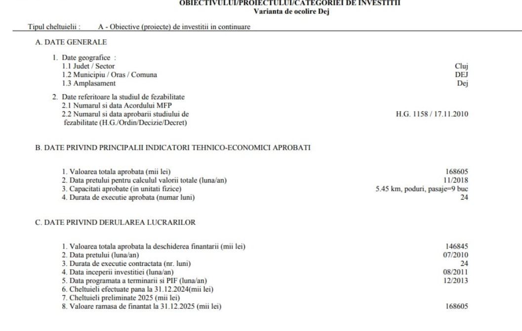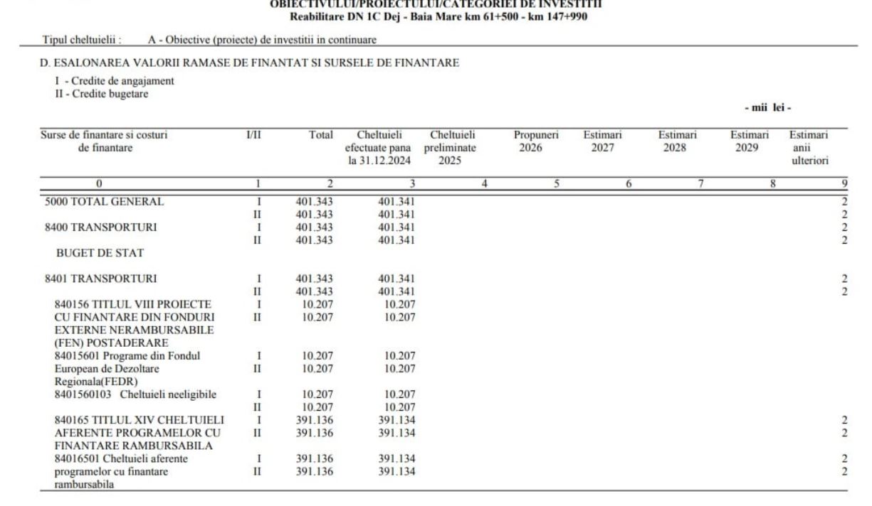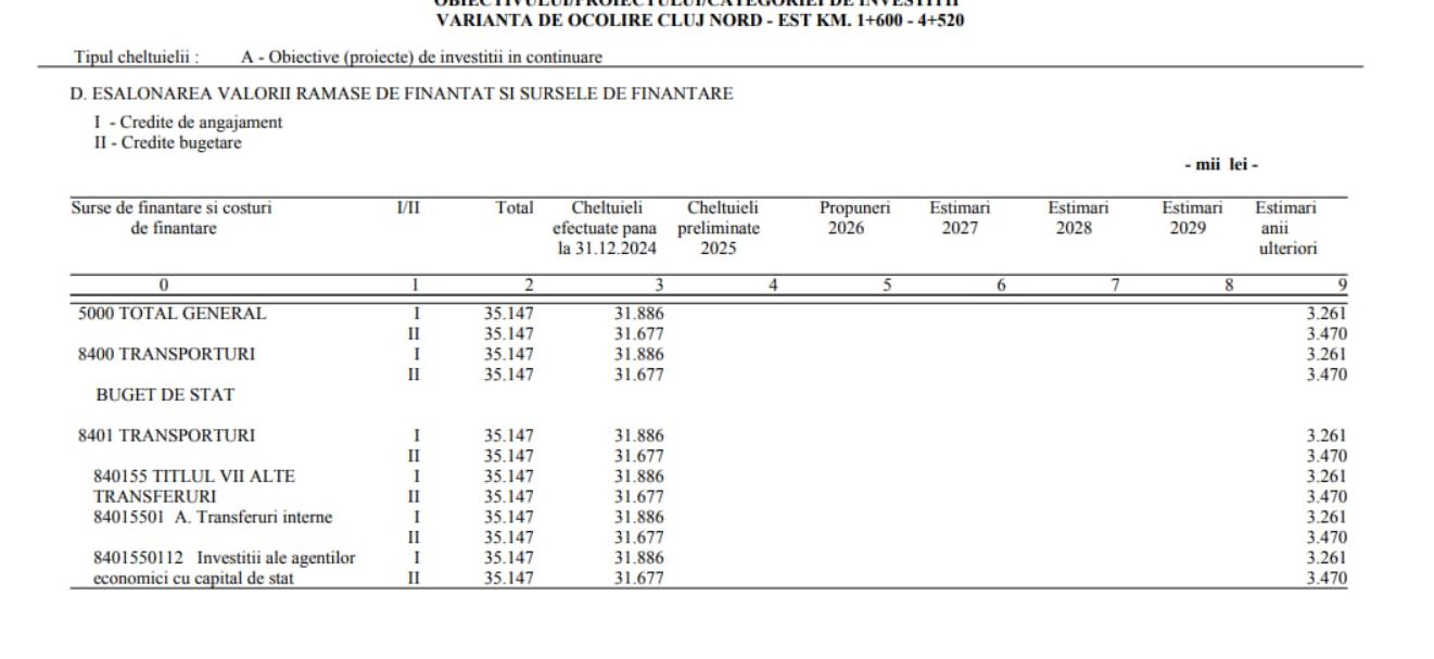 În 2026 este vizată alocarea integrală a sumei prevăzute pentru proiect, cu o durată de implementare de 24 de luni.