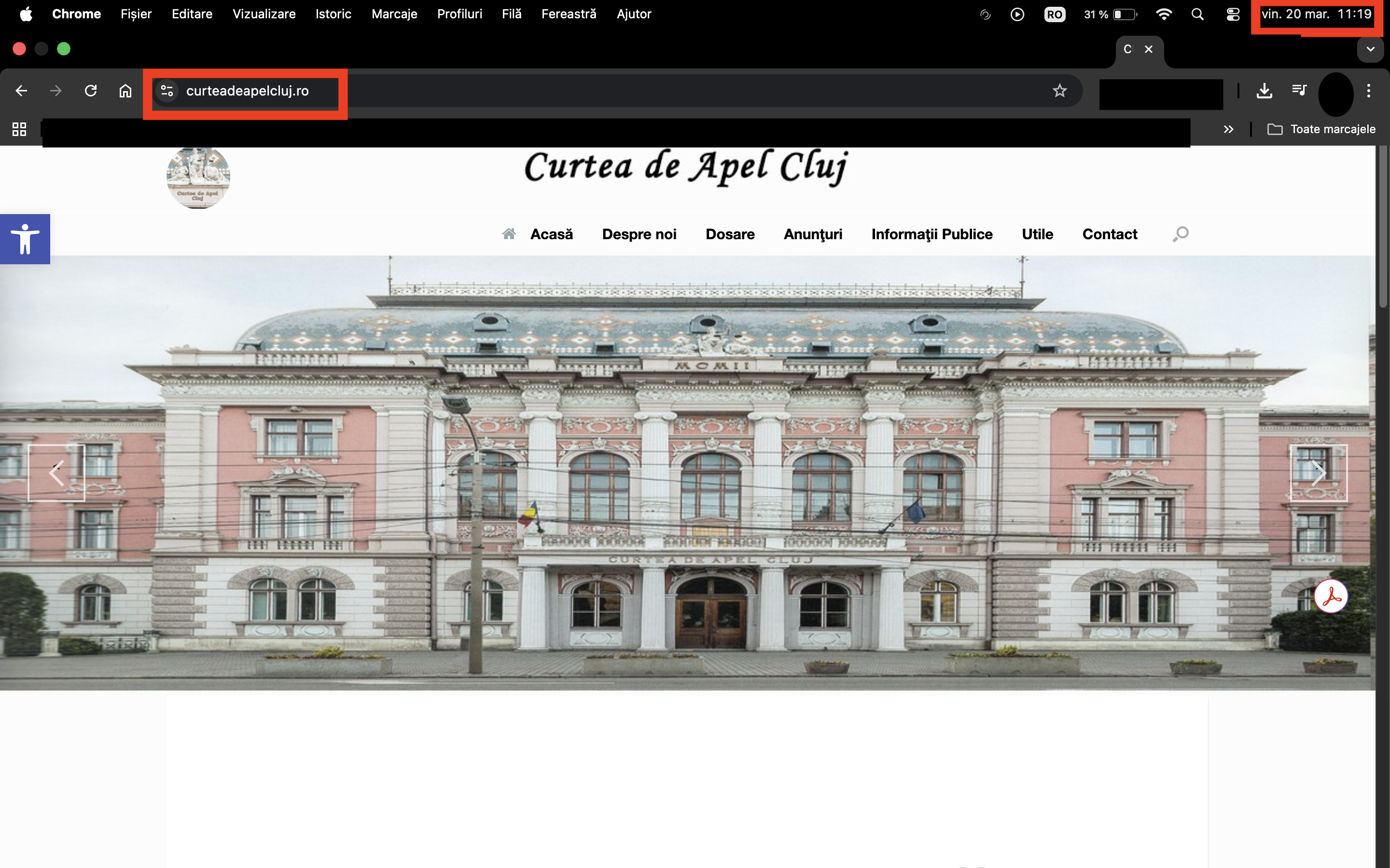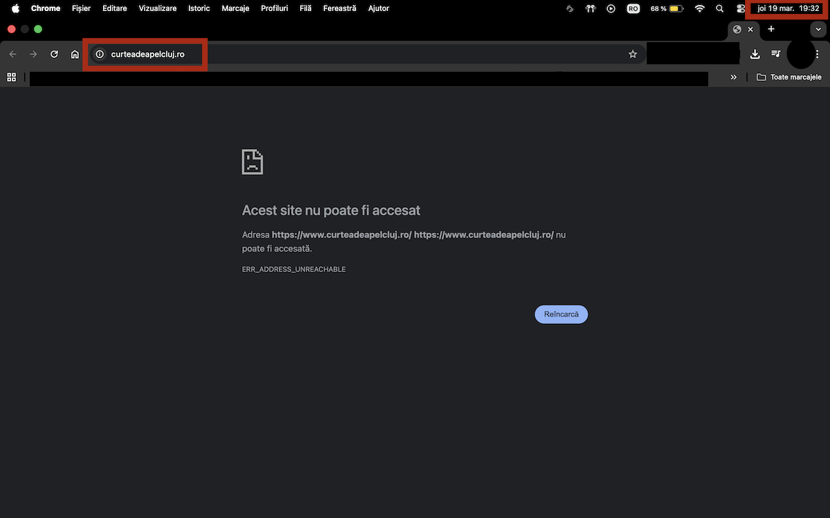Site-ul Curții de Apel Cluj, nefuncțional, joi, 19 martie 2026 | Foto: Facebook, Curtea de Apel Cluj - Oficial
