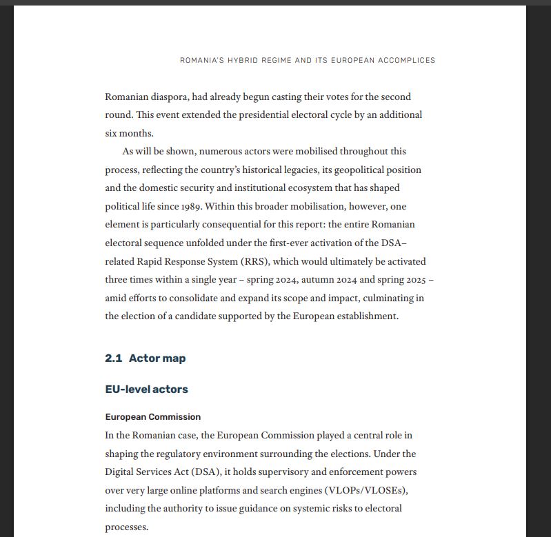 Iar influența UE ar opera, susține raportul, prin mai multe pârghii: condiționări financiare, presiuni juridice, cadre de guvernanță digitală (Digital Services Act), producerea coordonată de narațiuni în rețele instituționale, media și ONG-uri