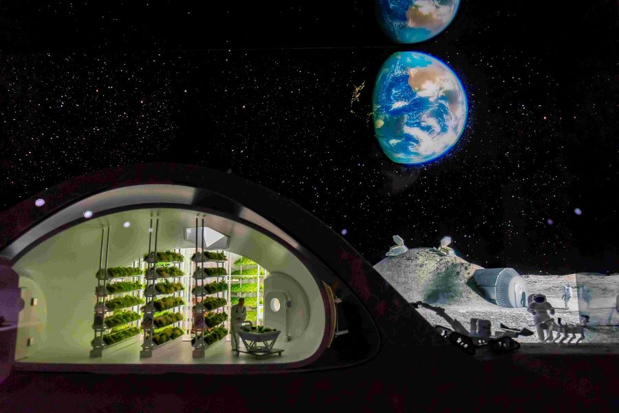 - Arhitectura Spațială închide expoziția cu proiecte care privesc dincolo de Terra: un habitat modular pentru planeta Marte, realizat în parteneriat cu NASA, respectiv cercetări în imprimarea 3D pentru construcții selenare — direcții care generează astăzi soluții concrete pentru construcții terestre sustenabile.
