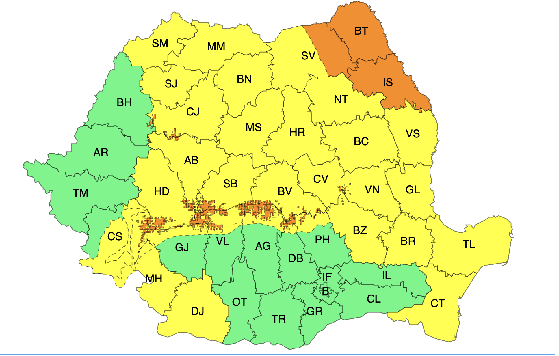 Interval de valabilitate cod galben: 23 aprilie, 09.00-22.00