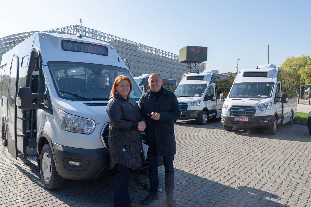 Șase noi microbuze școlare electrice au fost predate de către vicepreședintele Consiliului Județean Cluj, Radu Rațiu, comunelor Florești, Apahida, Panticeu, Dăbâca, Palatca și Sânmărtin.