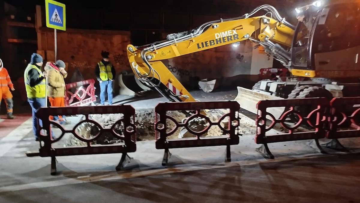 Ieri seară, pe strada Dragalina din Cluj-Napoca, muncitorii au spart asfaltul pentru a efectua lucrări.