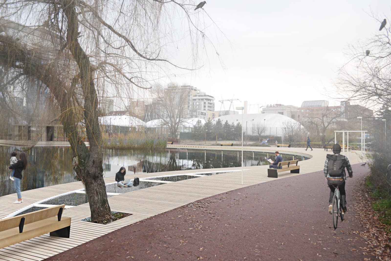 De asemenea, pe zona de mal din proximitatea caselor de locuit sunt prevăzute platforme de pescuit. Lucrări de ecologizare a lacului, lucrări de captare a apei, recirculare și oxigenare sunt alte câteva obiective parte a proiectului de modernizare.