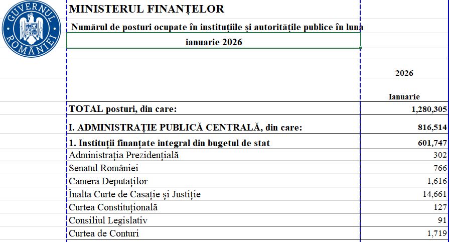 Astfel, la început de an au fost cu 1.510 mai multe posturi ocupate în instituțiile și autoritățile publice din România comparativ cu luna precedentă, conform datelor publicate de Ministerul Finanțelor (MF), potrivit Agerpres.ro