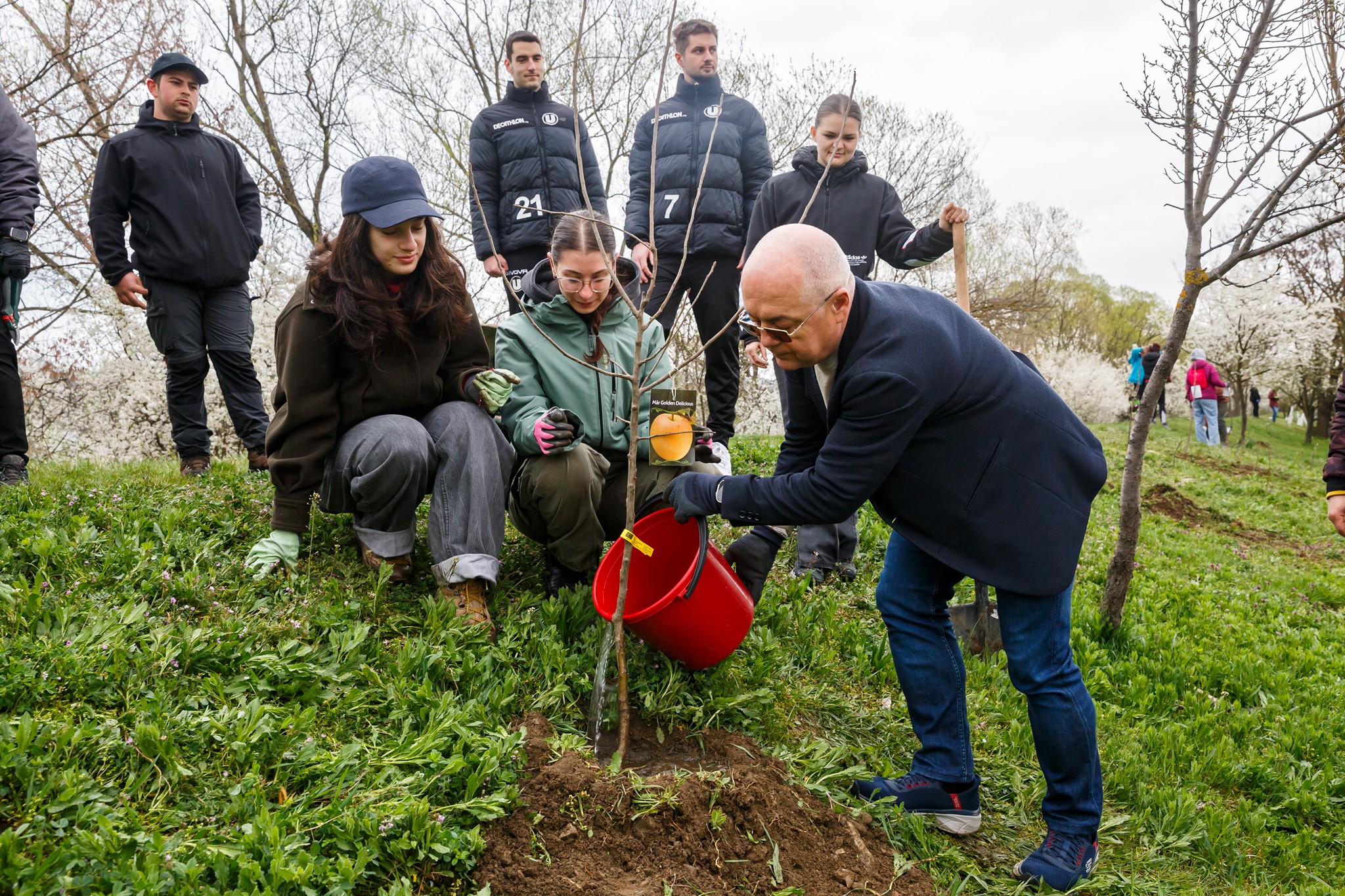 Emil Boc a pus mâna pe lopată și a plantat copaci alături de clujeni și sportivi de la „U”