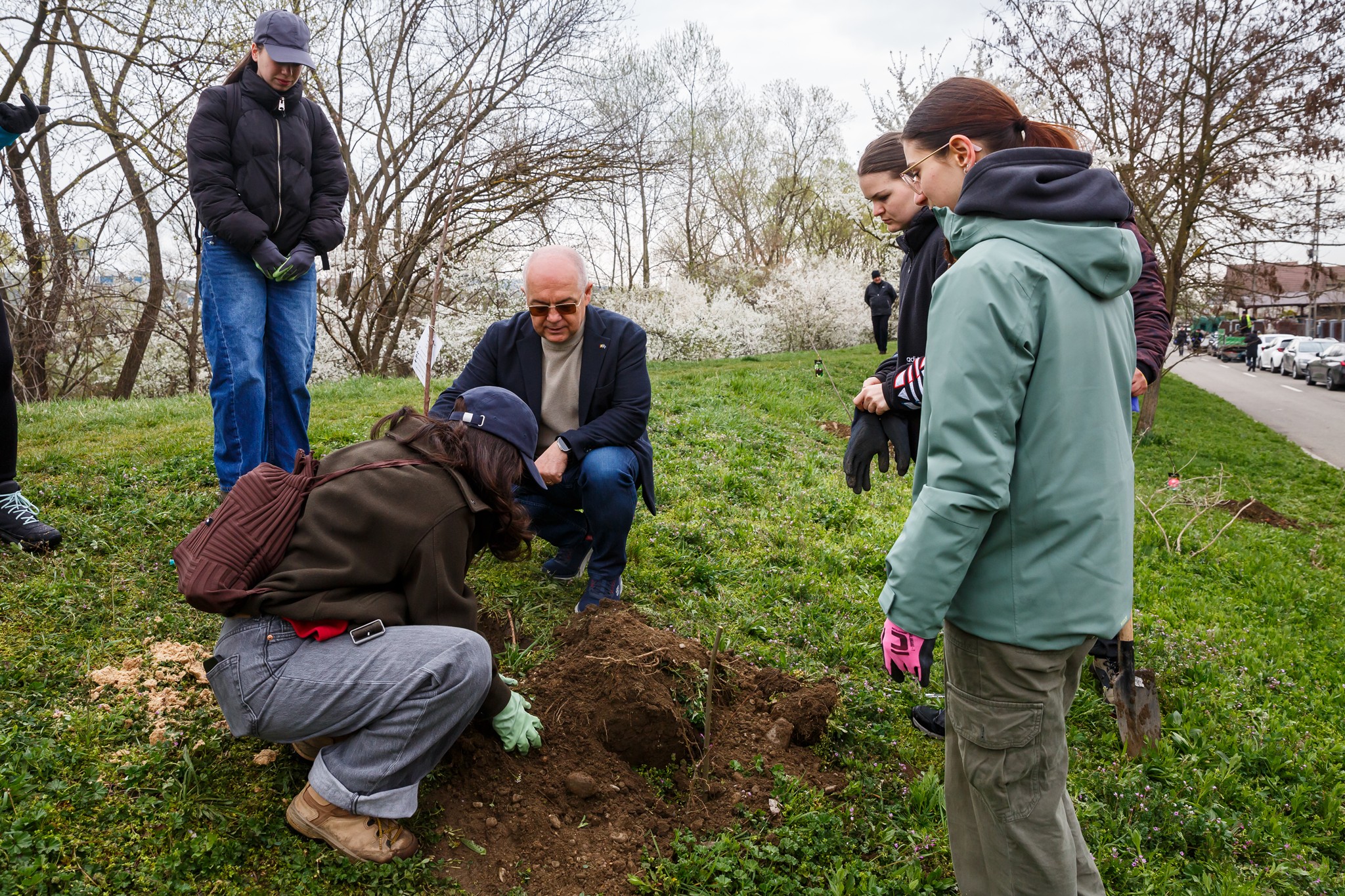 Primarul Emil Boc a pus din nou mâna pe lopata și a plantat copaci cot la cot cu clujenii.