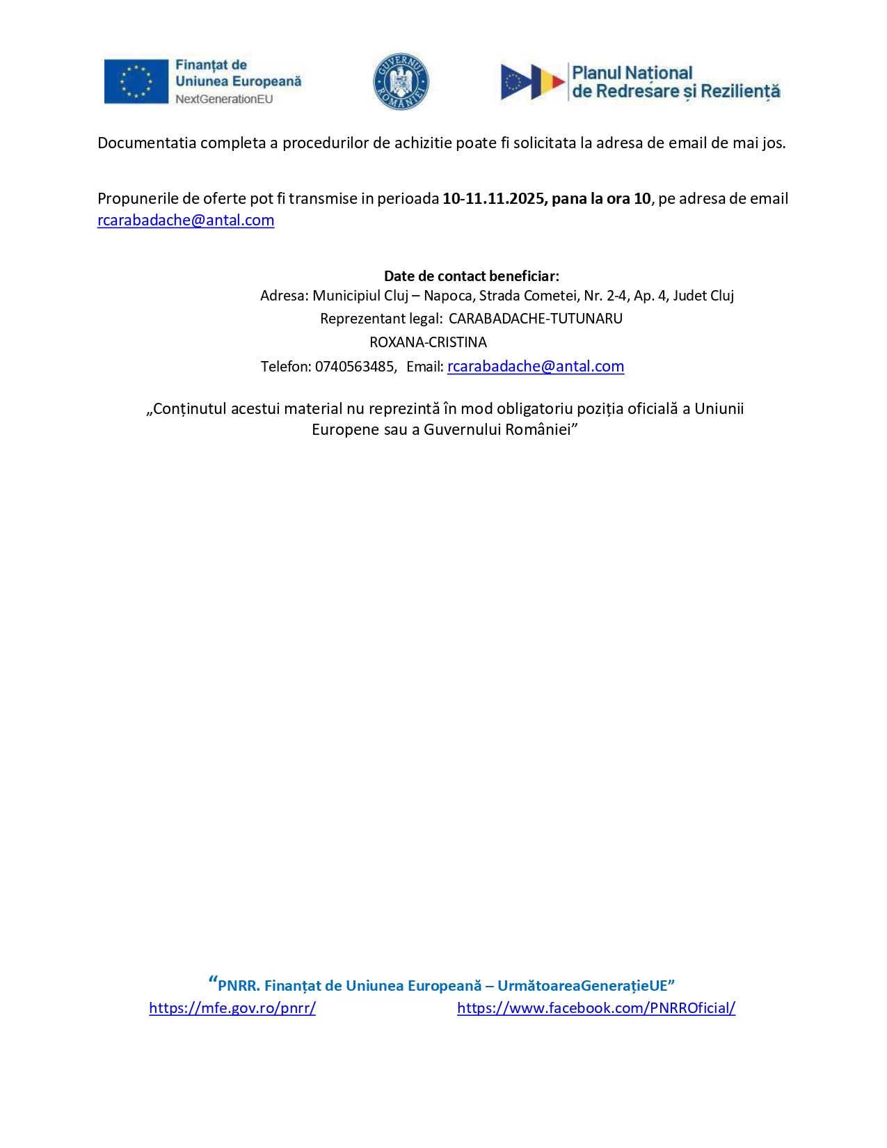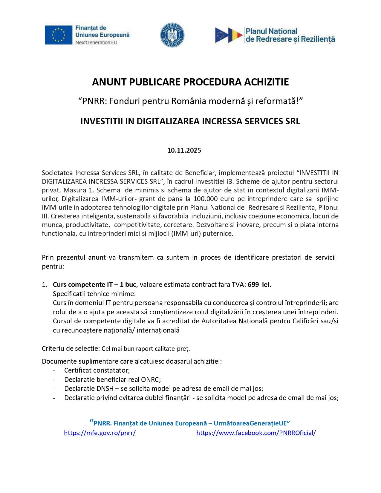 Anunțuri Anunț publicare procedură achiziție “Investiții în digitalizarea INCRESSA SERVICES SRL” 14:47, Scris de: Advertorial