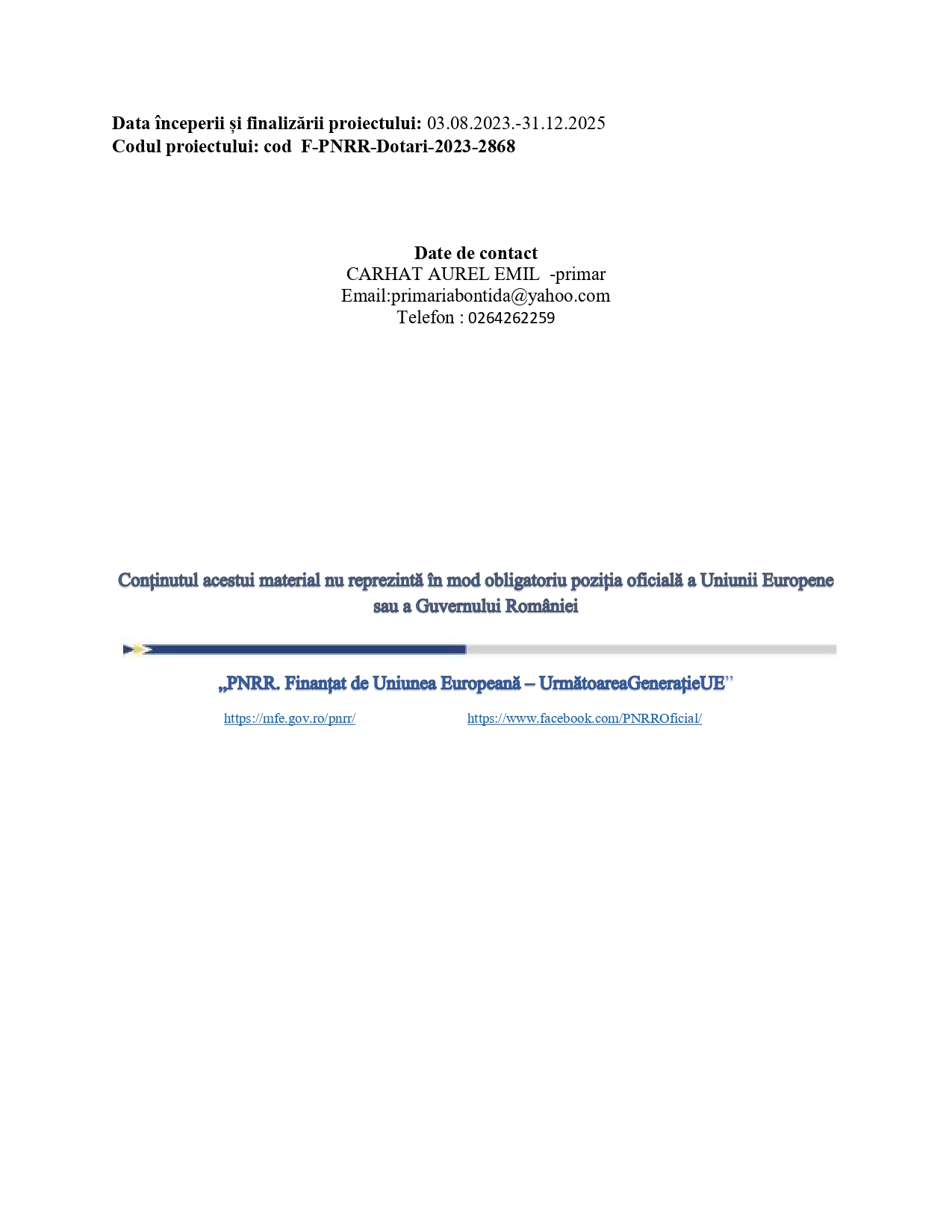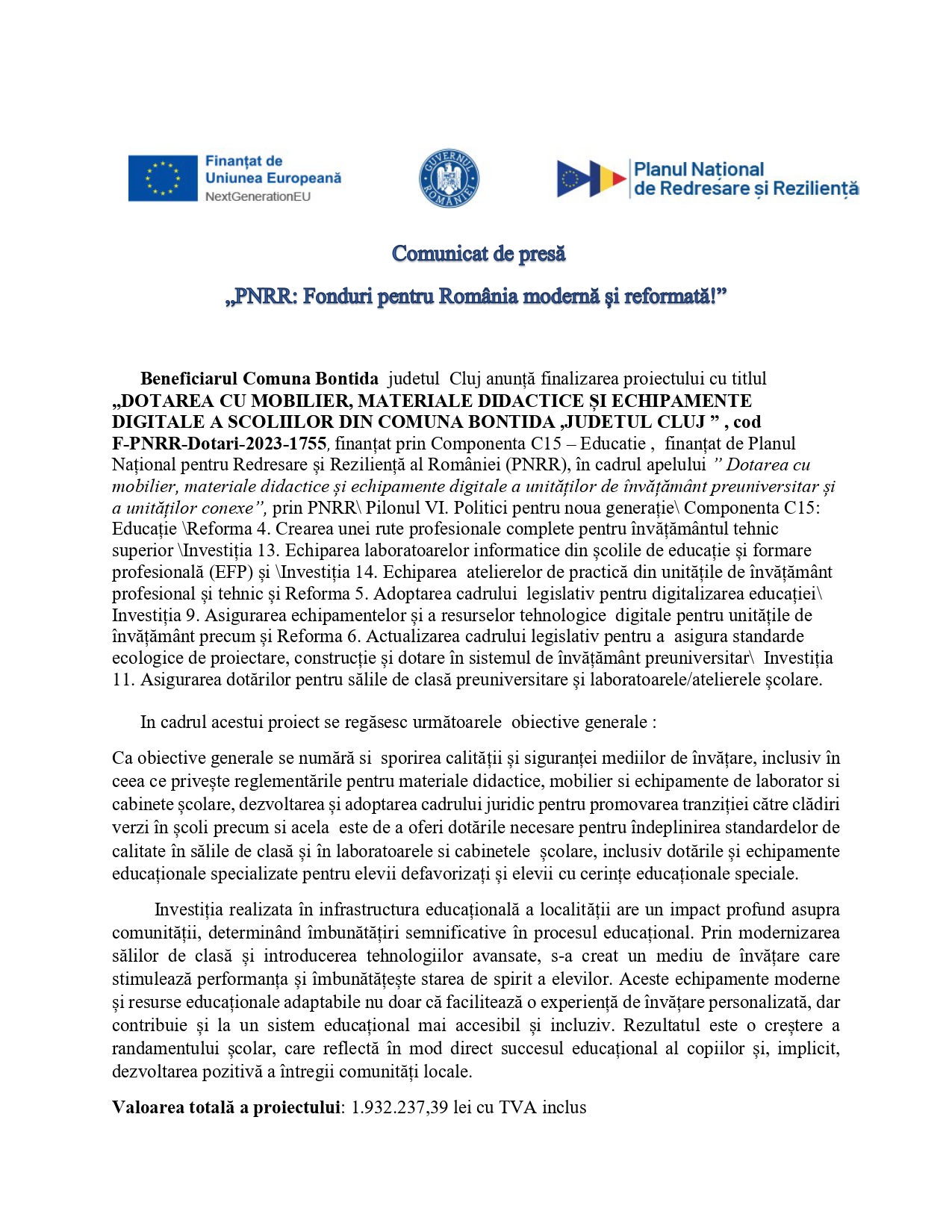 Comunicat de presă - Comuna Bonțida