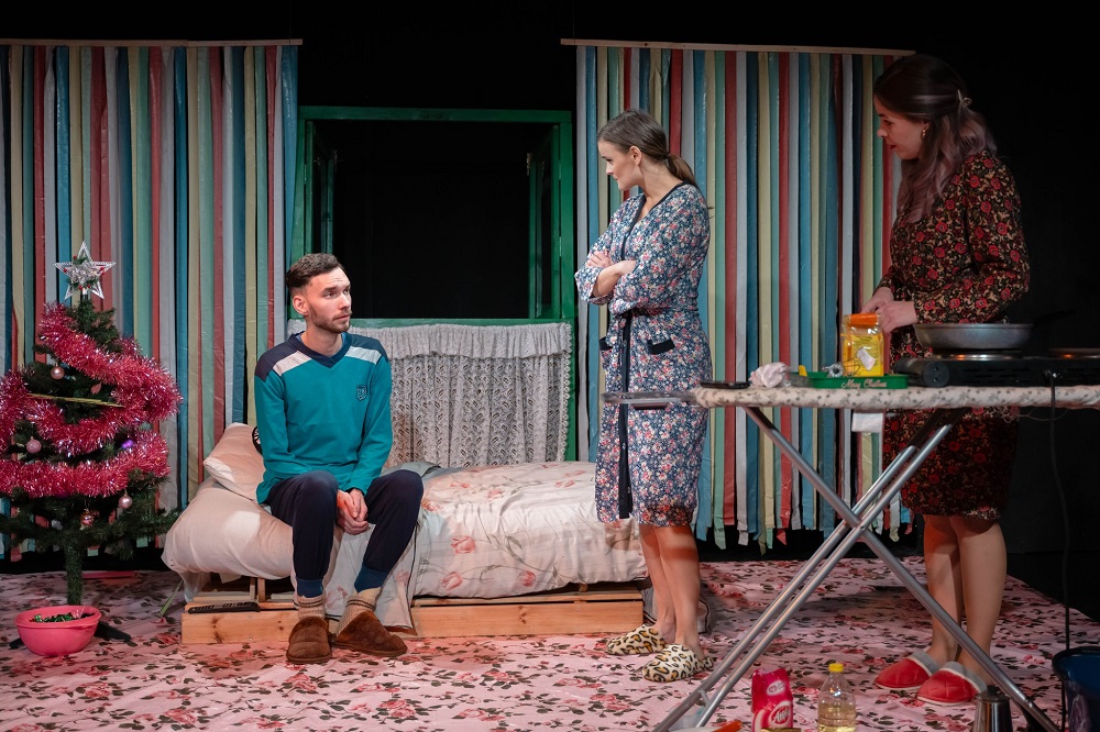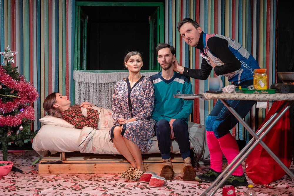 Spectacolul „Sărbătorile vin, fă-mă să uit puțin” spune povestea familiei Roșca, care, confruntată cu riscul de a-și pierde locuința, ajunge să-și pună speranțele într-un concurs televizat | Foto: Stația Teatru / Muzical - Facebook