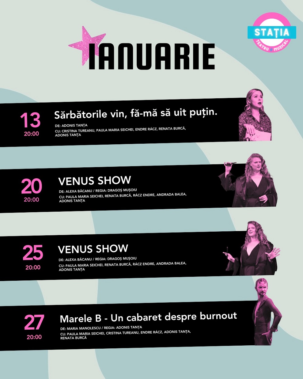 Luna ianuarie aduce pe scena Stația Teatru/Muzical o selecție de spectacole care îmbină emoția, umorul și muzica live cu teme actuale și curajoase.