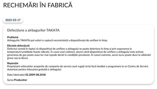 - informații despre utilizările anterioare (taxi, flotă etc.), uneori și fotografii arhivate.