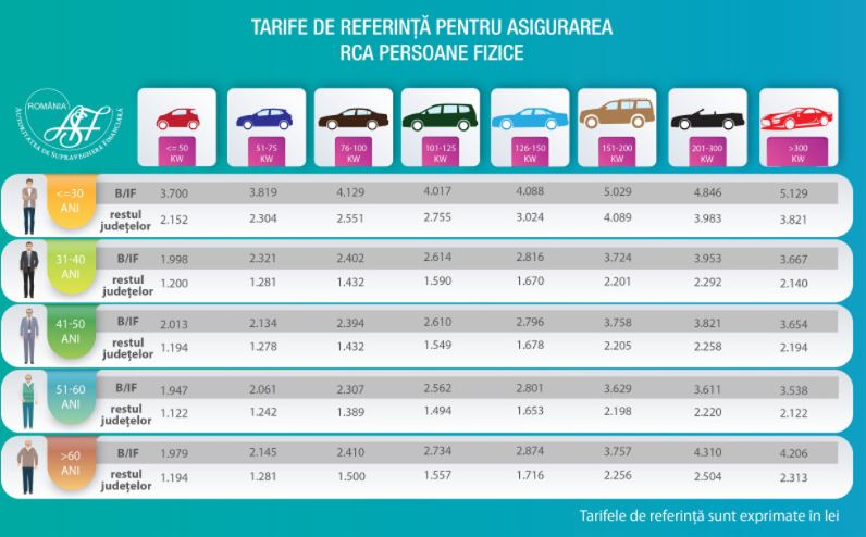 Autoritatea de Supraveghere Financiară (ASF) a publicat, miercuri, noile tarife de referință RCA, care indică o creștere medie cu 5,4% pentru autoturisme și cu 5,2% pentru autovehiculele de transport bunuri.