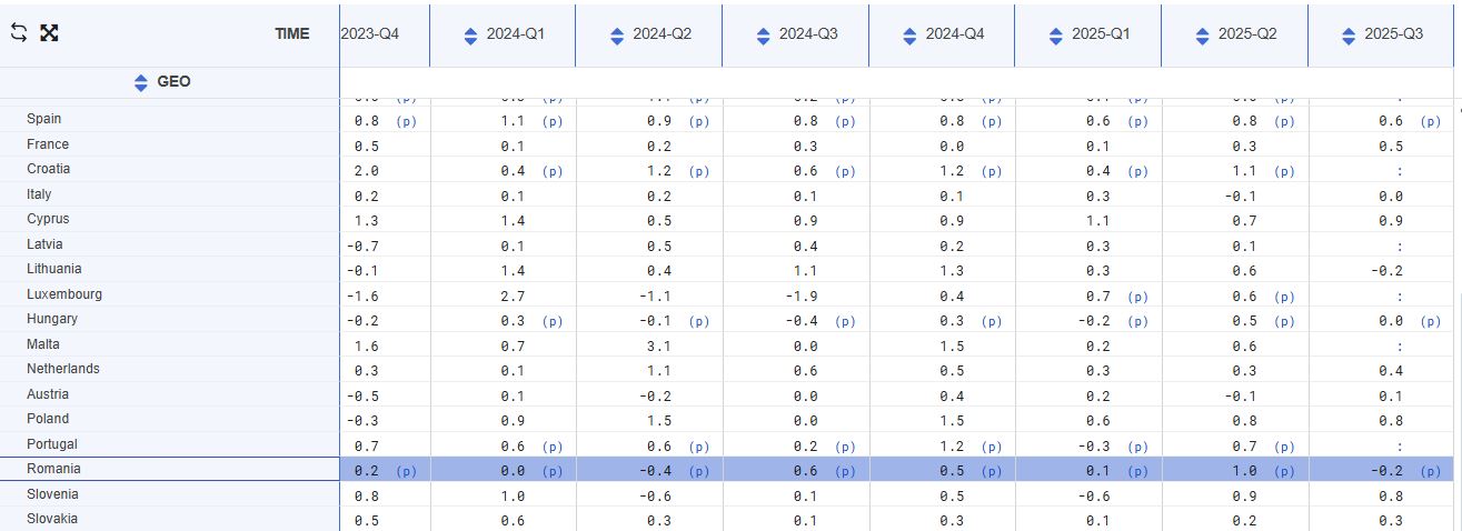 În rândul statelor membre UE pentru care sunt disponibile datele, în trimestrul trei din 2025, comparativ cu precedentele trei luni, cel mai semnificativ avans al economiei s-a înregistrat în: