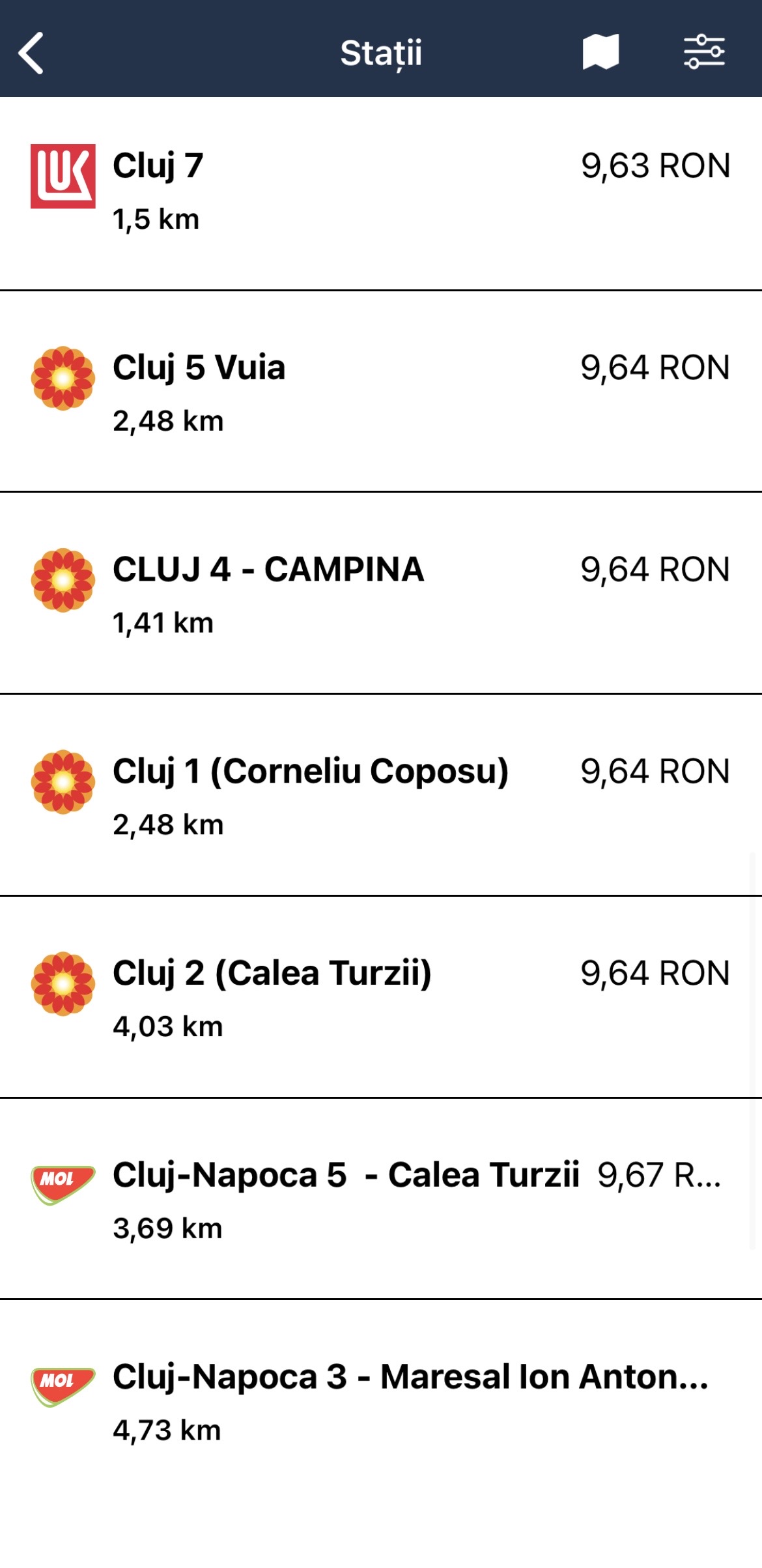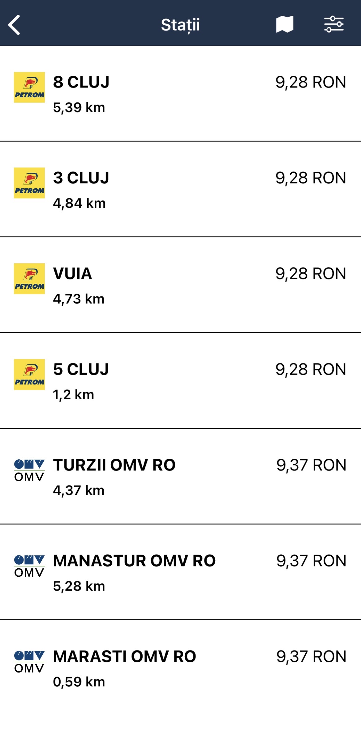 Al doilea cel mai mic preț este la OMV: 9,37 lei/litru, o scădere tot de 30 de bani/litru față de ieri.