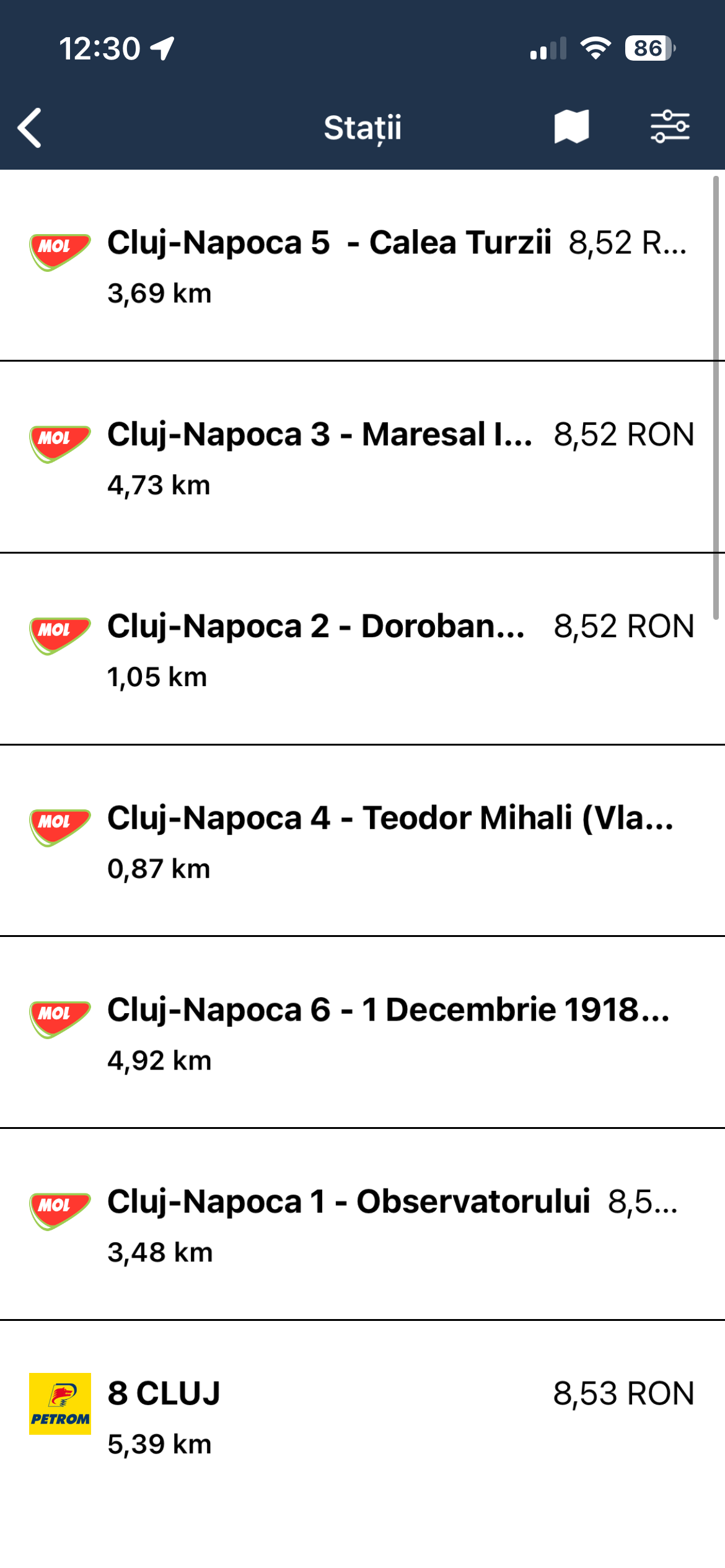De această dată, cel mai mic preț este la Mol, 8,52 lei/litru.