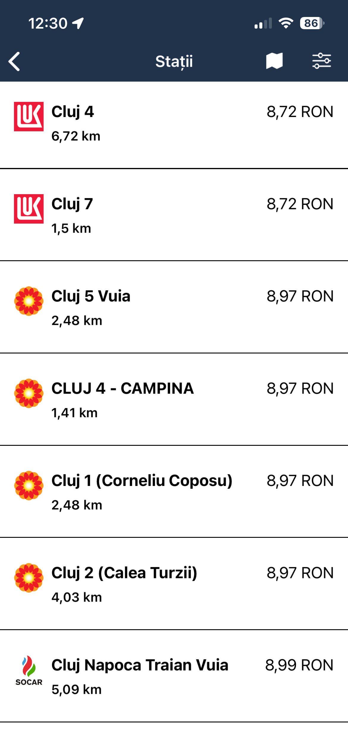Lukoil a rămas cu același preț: 8,72 lei/litru.
