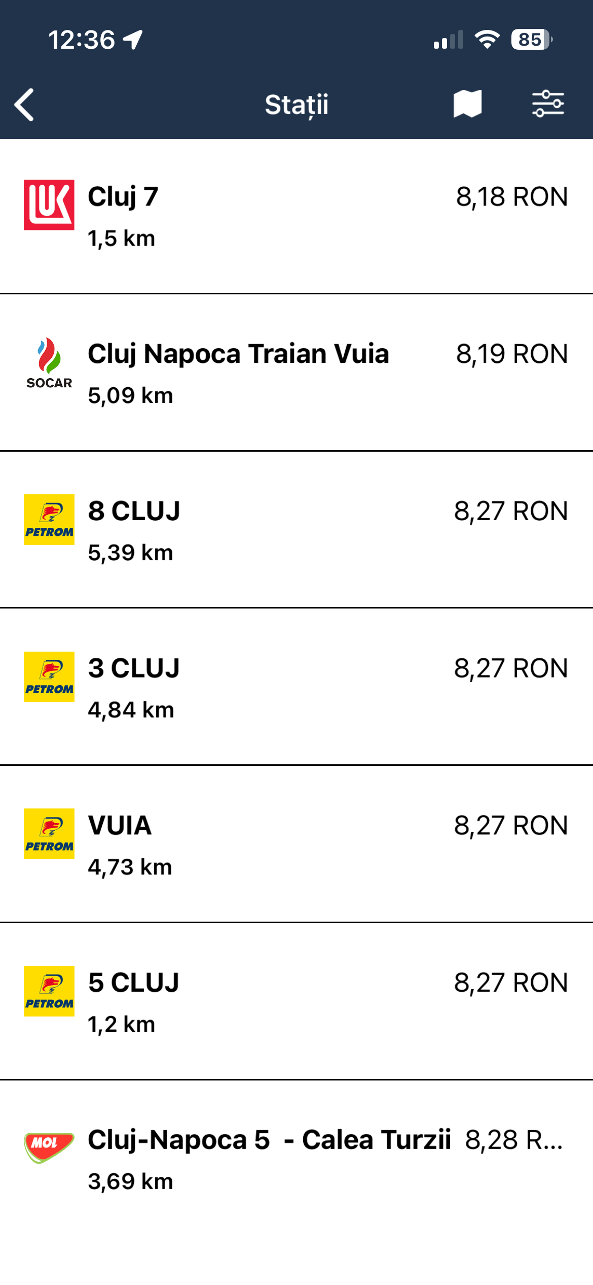 Ieri, în Cluj-Napoca, cel mai mic preț pentru benzina standard era de 7,99 lei/litru, iar azi costă 8,18 lei/litru.