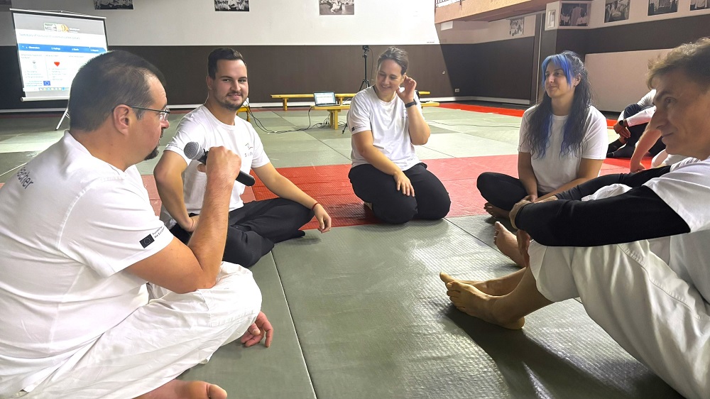 O altă activitate a fost coordonată de partenerii din Spania, care au pregătit o serie de exerciții ce au la bază principiile artei marțiale Aikido, o artă în care cel vizat de atac caută să armonizeze mișcările spre a redirecționa atacul.