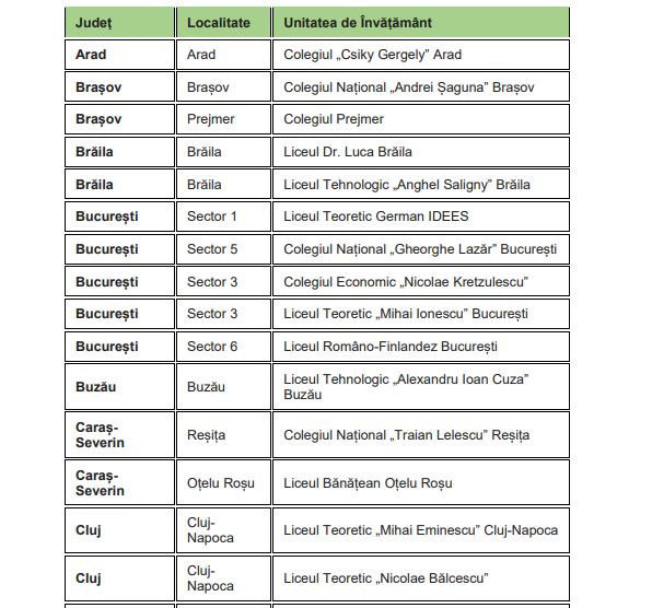 La nivel național, 28 de instituții de învățământ preuniversitar, licee de stat și private, s-au înscris în program.