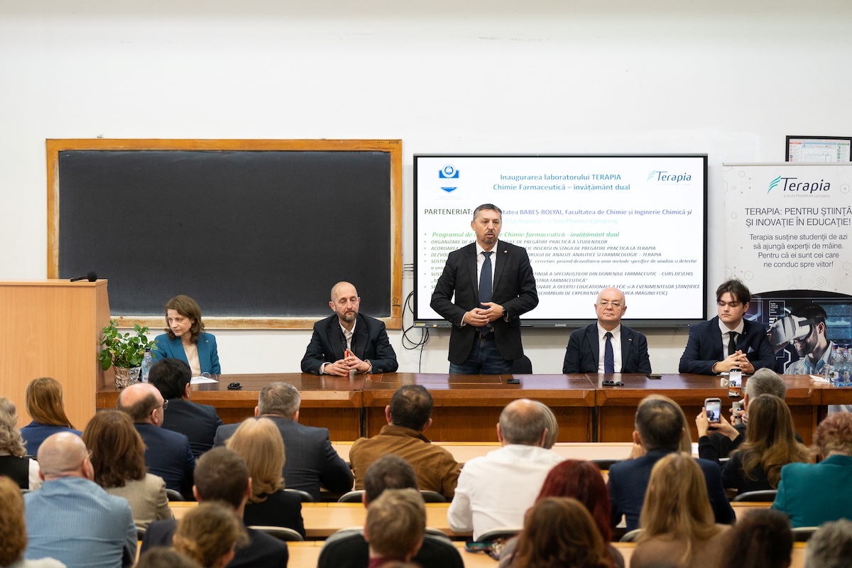 Universitatea Babeș-Bolyai din Cluj-Napoca (UBB) a inaugurat vineri, 30 ianuarie 2026, „Laboratorul de chimie farmaceutică - Terapia” dedicat programului de studii de Chimie Farmaceutică - învățământ dual organizat de Facultatea de Chimie și Inginerie Chimică a UBB (FCIC), în parteneriat cu Terapia - Sun Pharma.
