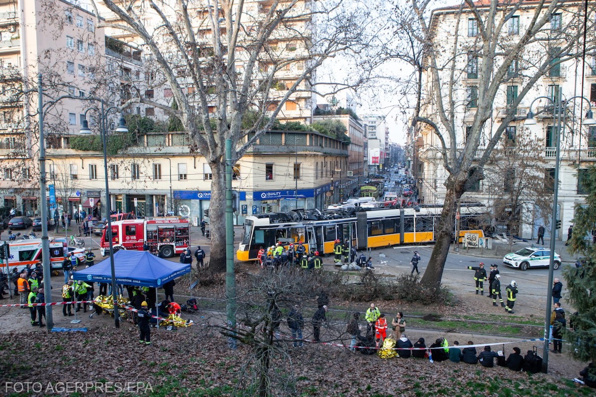 Un tramvai a deraiat și a lovit o clădire vineri, 27 februarie 2026, în centrul orașului Milano, nordul Italiei și a provocat moartea unei persoane și rănirea altor patruzeci, a declarat un purtător de cuvânt al serviciului de pompieri, relatează Reuters, citat de Agerpres.ro.