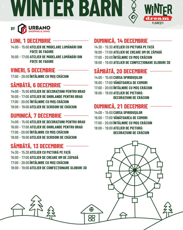 Evenimentele din program și Întânirile cu Moș Crăciun din Winter Barn sunt susținute de Urbano Shopping & Living, Automobile Bavaria, ING Bank și VIVO!