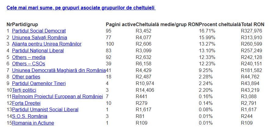 Spre exemplu, de la începutul anului și până pe 18 mai 2025, partidele politice și candidații independenți care au marcat postările ca publicitate politică sau socială, cheltuiseră peste 6 milioane de lei.