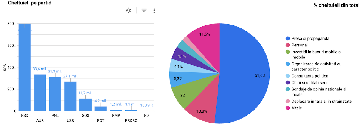 Conform sursei citate, PSD, PNL și AUR au cheltuit mai mult pentru presă și propagandă decât în lunile de vară, cum s-a întâmplat și în alți ani. La AUR, de exemplu, aceste cheltuieli reprezintă aproape trei sferturi din bani.