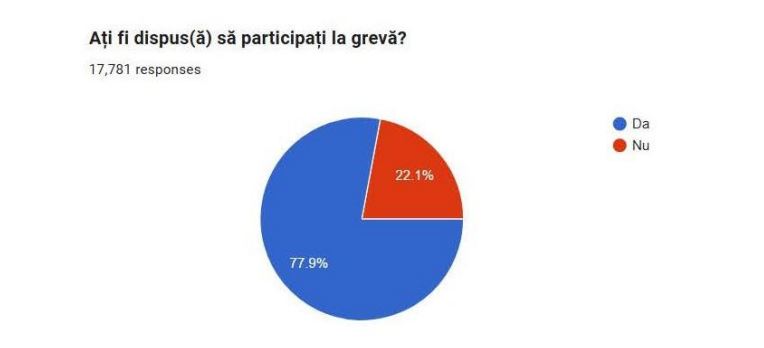 „Aceste date reflectă o nemulțumire profundă, dar și disponibilitatea reală pentru acțiune din partea personalului din educație, care solicită respectarea drepturilor, stabilitate și soluții concrete pentru funcționarea corectă a sistemului”, informează FSLI într-un mesaj publicat pe pagina de Facebook.