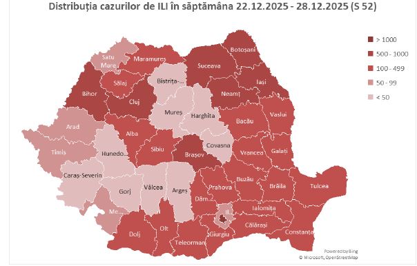 De asemenea, potrivit sursei citate, de la începutul sezonului gripal, în țară au fost raportate 398 de cazuri gripă confirmate de laborator, din care 104 au fost în săptămâna 22-28 decembrie.