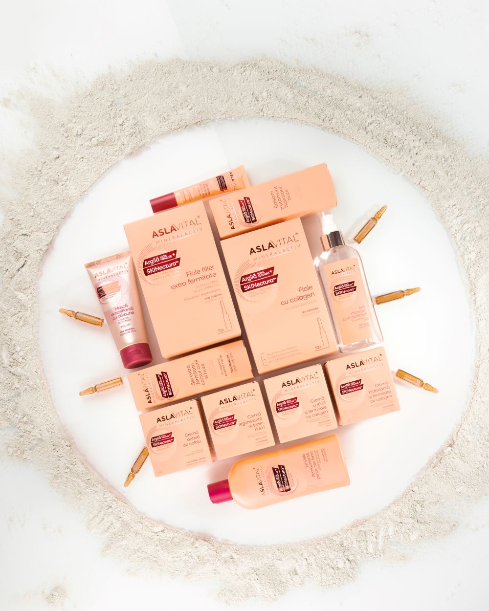 Promisiunea gamei este o redefinire a arhitecturii pielii, iar fiecare ingredient cheie lucrează la asta. Argila extrasă din Munții Pădurea Craiului conține peste 20 de minerale ce purifică și calmează, în timp ce SKINectura™ este un activ natural și organic care îmbunătățește structura dermului și stimulează producția de colagen. Argireline® Amplified Peptide vine cu efectul miorelaxant, ajutând la reducerea ridurilor de expresie. Testele probează că Aslavital contribuie la reducerea ridurilor după doar 1 oră de la aplicare și are un efect de lifting de +27%. Prin soluțiile multiple pe care le oferă, produsele Aslavital sunt recomandate pentru toate femeile peste 25 ani care își doresc o rutină corectă pentru tenul sensibil, fiind și un ajutor important pentru problemelor tenului femeilor ajunse la menopauză.
