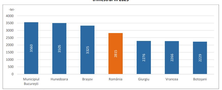 Pensia medie lunară a fost de 2.941 lei, în creștere cu 0,3% față de trimestrul precedent.