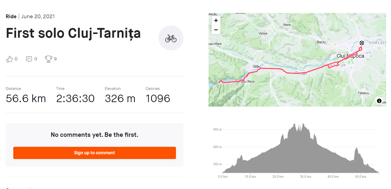 „Urcarea după Chinteni te seacă rău de tot, după urmează o tonă de serpentine, te ține în priză și pune inima «ca lumea» în funcțiune. Dar după, urmează mulți kilometri de plat care te ajută să te regenerezi. Depinde de la om la om cum reușește să facă traseul, eu l-am făcut în 4-5 ore, fără grabă și fără ritm alert”, a adăugat băiatul.