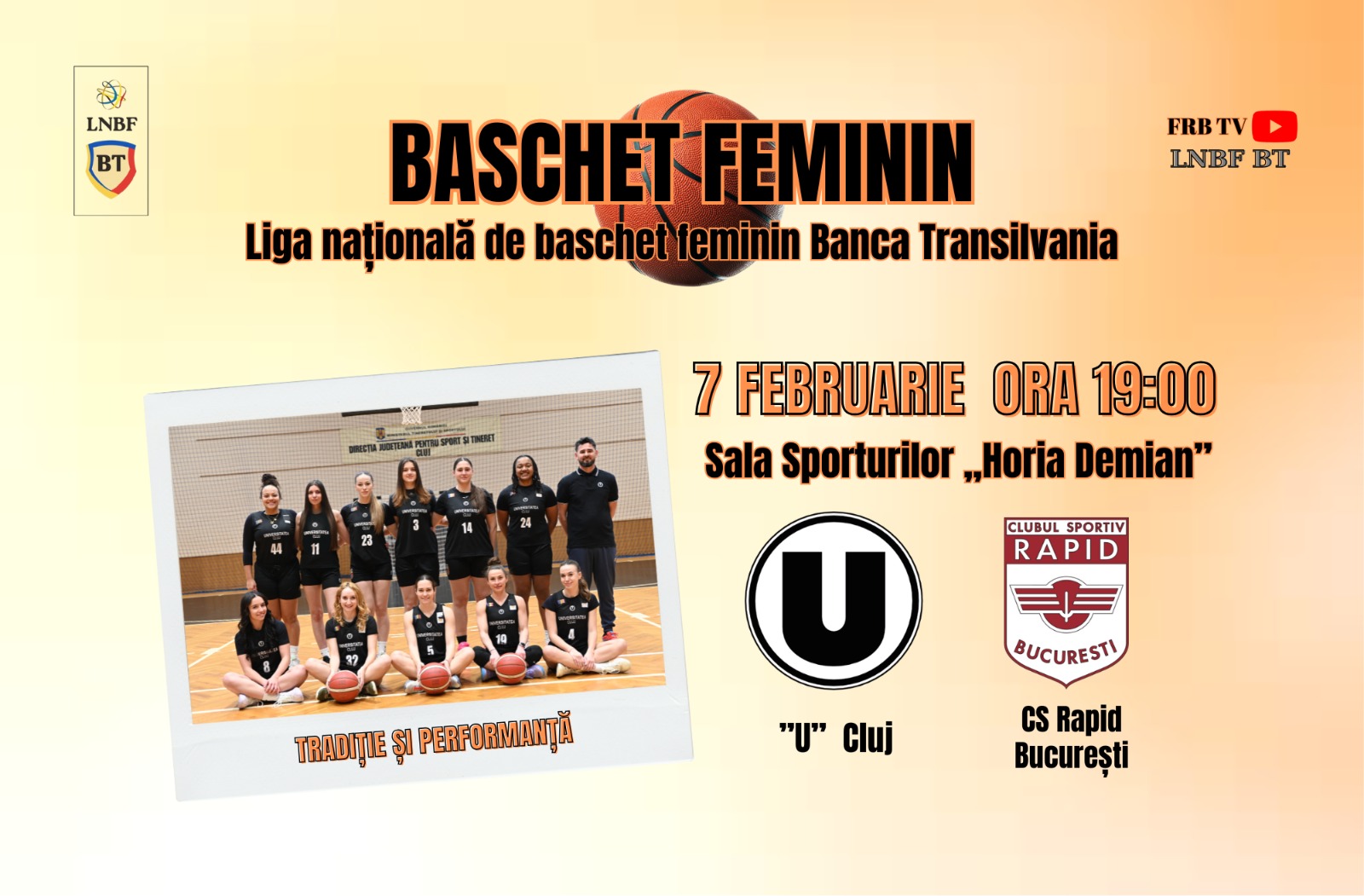 La baschet va juca și echipa feminină, însă acasă la Cluj, tot astăzi, 7 februarie 2026, de la aceeași oră: 19.00, împotriva CS Rapid București, la Sala Sporturilor „Horia Demian”, în Liga Națională de Baschet Feminin Banca Transilvania, etapa a 17-a.