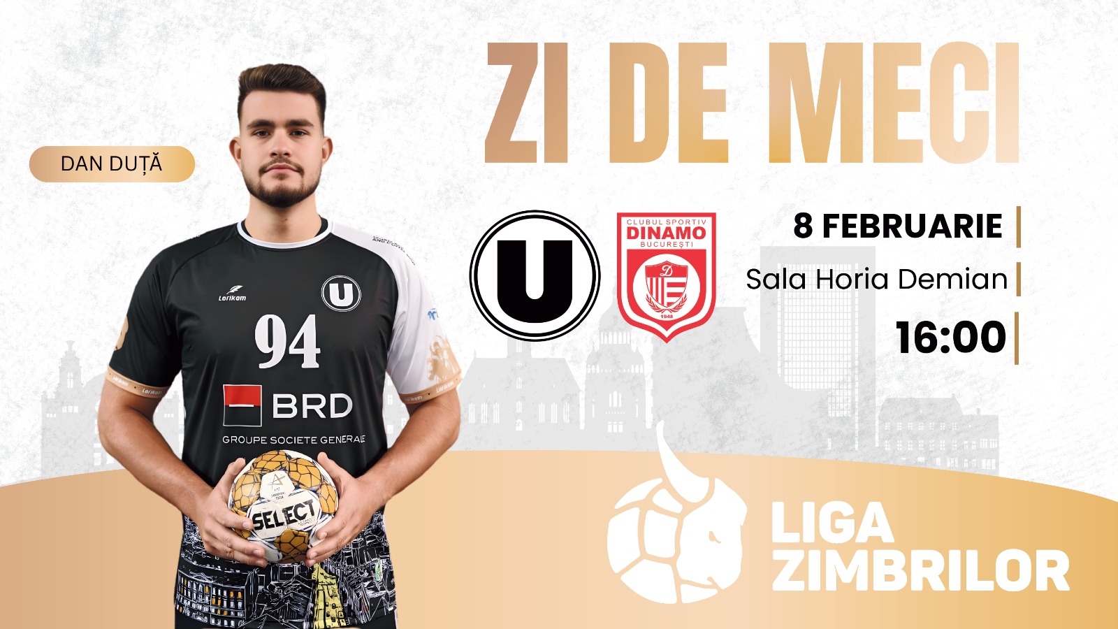 Rămânem în Sala Sporturilor duminică, deoarece va urma meciul de handbal masculin, unde Universitatea Cluj întâlnește CS Dinamo București, de la ora 16.00, în Liga Zimbrilor (Liga Națională).