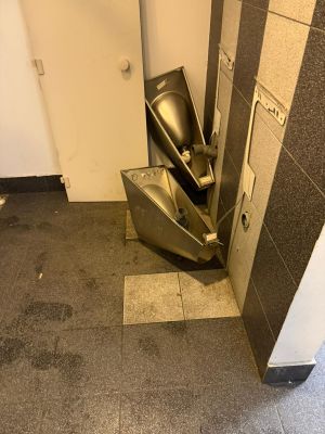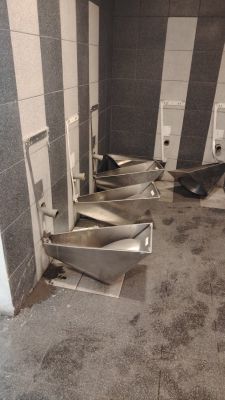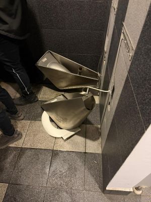 O parte dintre fanii CFR-ului au devastat toaletele situate în zona aferentă sectorului destinat galeriei oaspete, iar monitorulcj.ro a intrat în posesia unor imagini cu dezastrul lăsat pe stadion.