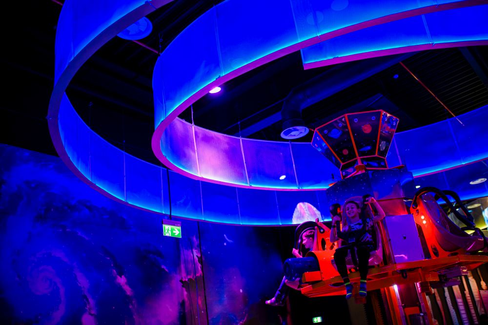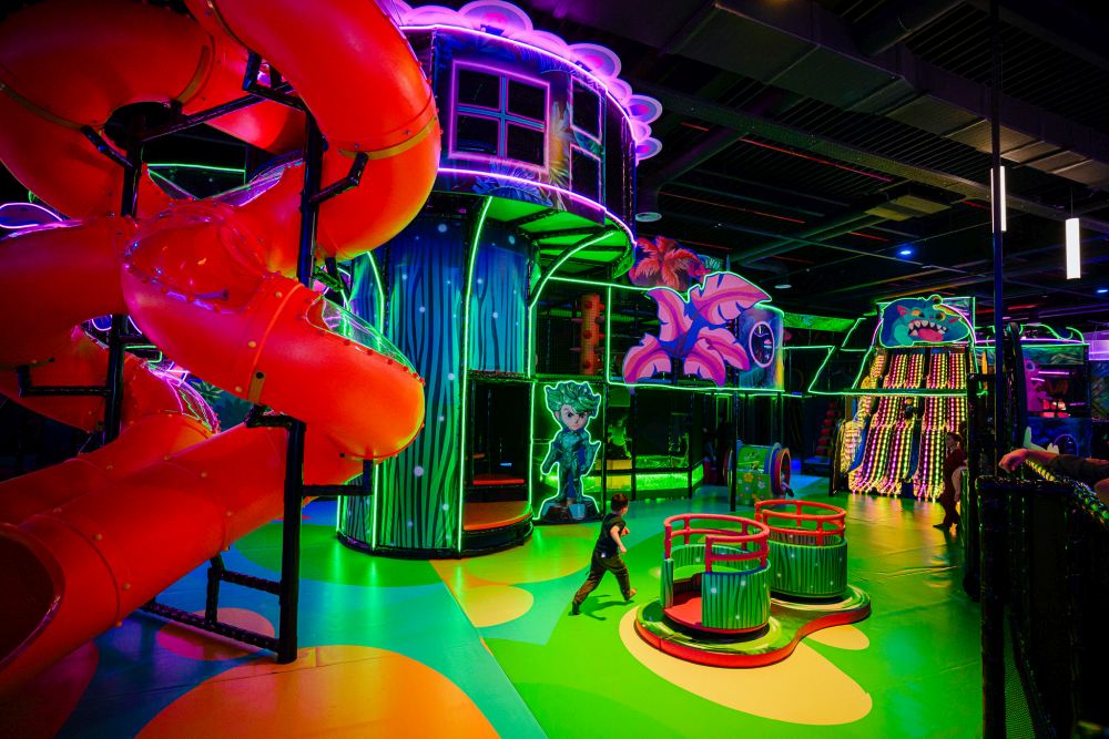 Spațiul modern și sigur oferă experiențe pentru toate vârstele: echipamente VR interactive, mii de metri de softplay și tobogane pentru cei mici, peste 30 de jocuri de tip arcade și ride-uri, dar și trasee pline de adrenalină precum cei 3 pereți de cățărare sau traseul suspendat de obstacole.