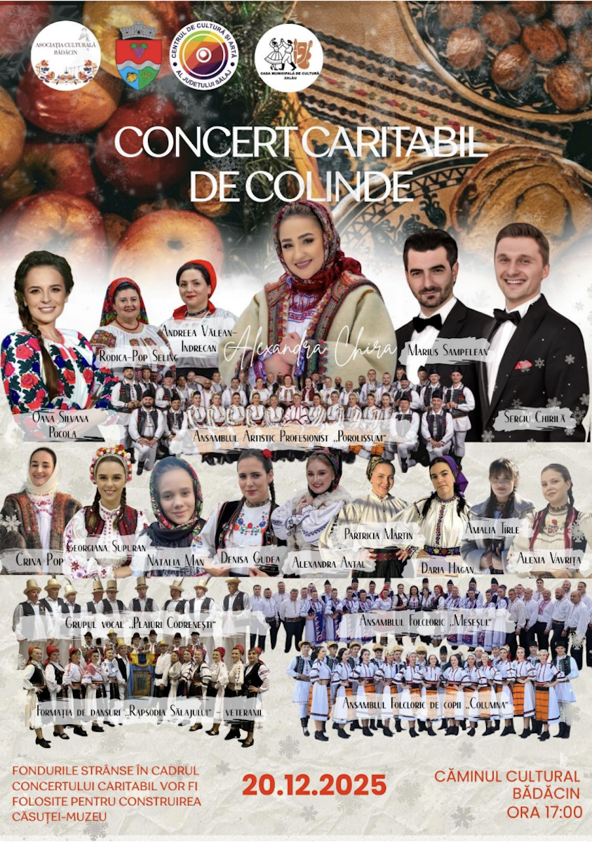 Asociația Culturală Bădăcin, un ONG de tineri voluntari din satul Bădăcin, județul Sălaj, organizează sâmbătă, 20 decembrie 2025, ora 17.00, la Căminul Cultural din sat, Ediția a II-a a Concertului Caritabil de Colinde.